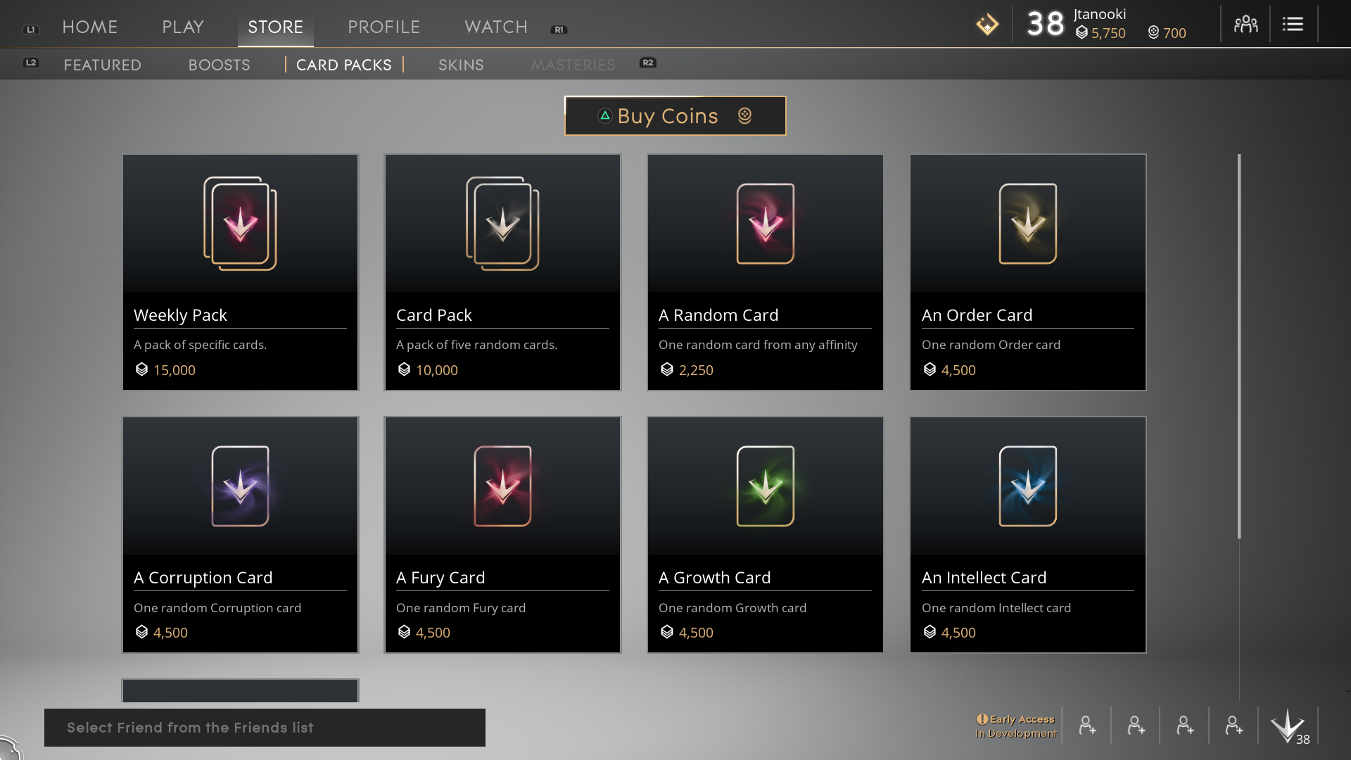 Card packs are items which can be used to obtain additional cards for your collection. There are a total of 9 different card packs you can purchase with the in game currency.